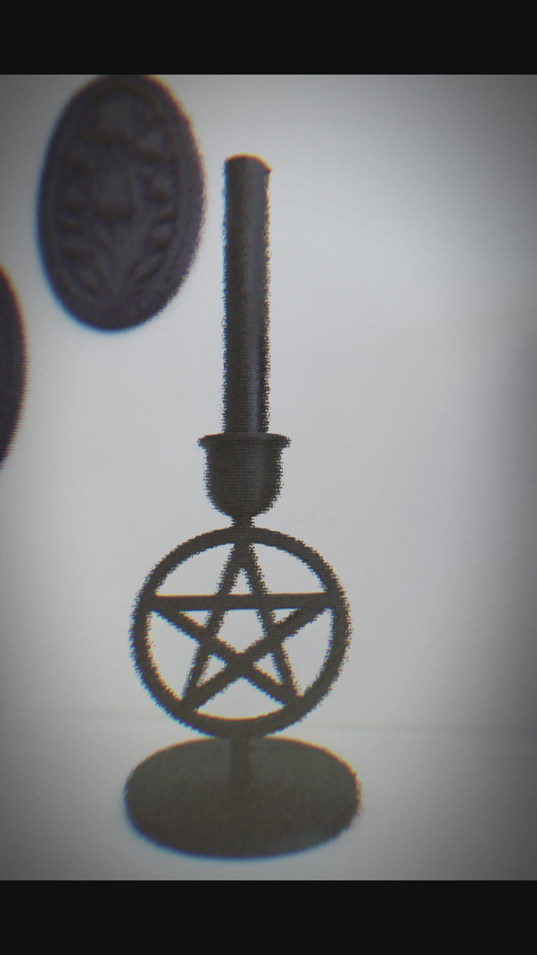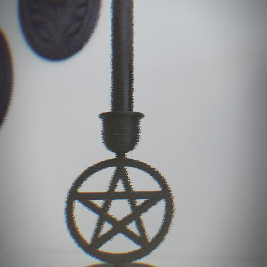 Summon atmosphere with this gothic pentagram candle holder, crafted for rituals, spellwork, and sacred ambiance. Designed to cradle a standard taper candle, its five-pointed star evokes protection, mystery, and elemental balance.