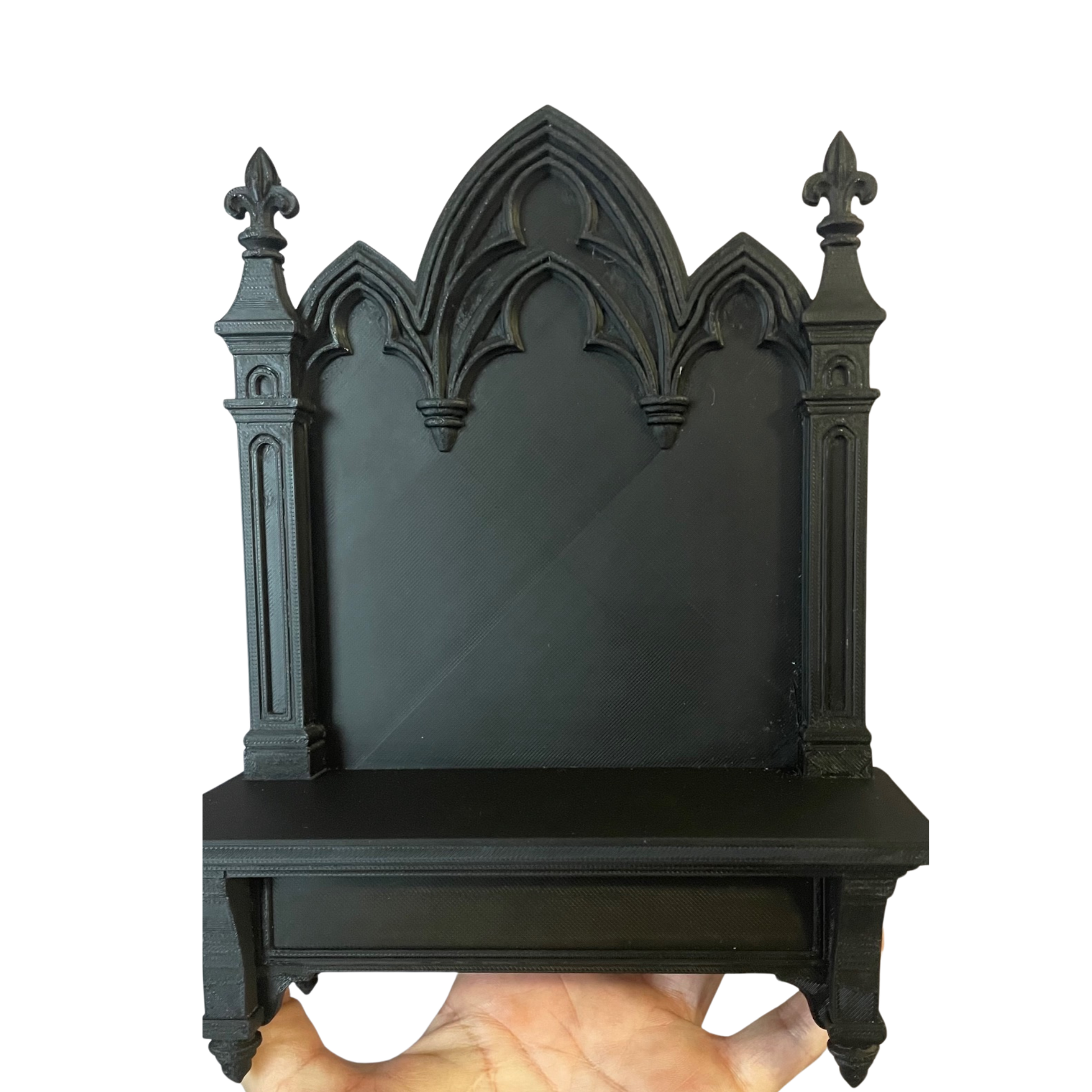 Gothic Cathedral Mini Shelf – Dark Altar Display for Jewelry, Crystals, or Witchy Decor – Black 3D Printed Occult Shelf