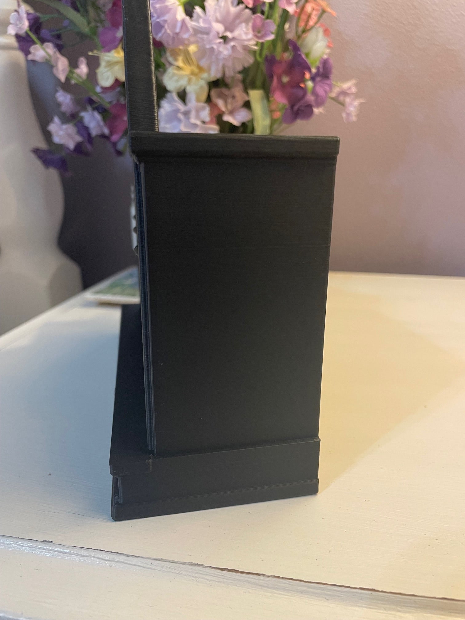 Bring a touch of dark elegance to your space with this gothic-inspired desktop altar shelf. Perfectly sized for desks, dressers, or altar tables, this piece features arched cathedral-style windows and intricate tracery details. Designed to hold apothecary bottles, crystals, or other small treasures, it’s the perfect blend of function and witchy romance.
