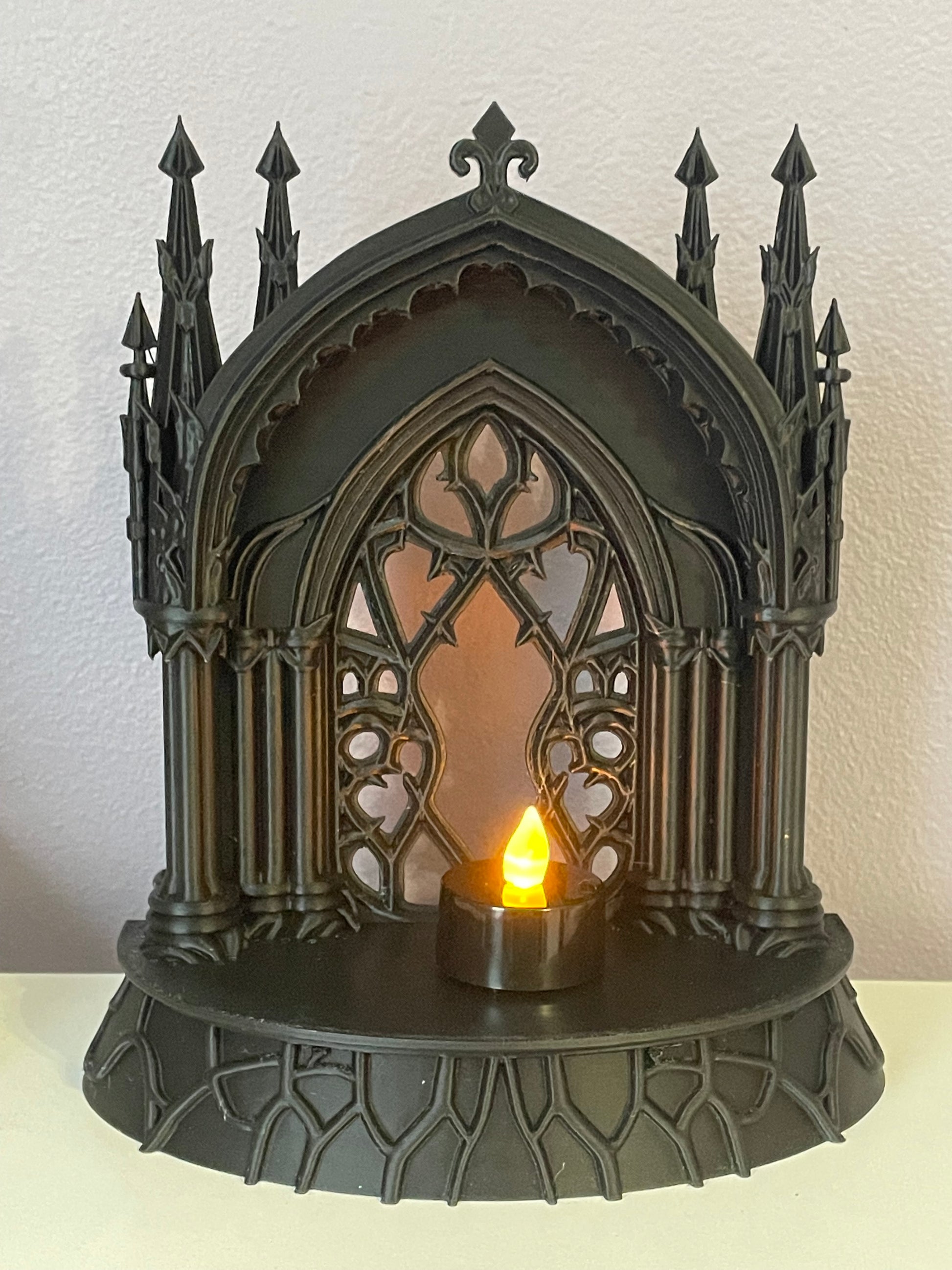 Gothic Cathedral Wall Mount or Tabletop Shelf – Matte Black Mini Altar Display